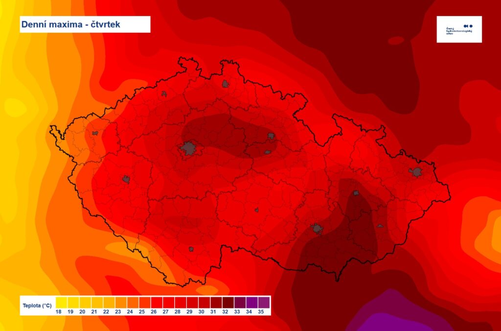 »Od západu nás dnes začíná přecházet zvlněná studená fronta. Ta už na západ Čech přináší velkou oblačnost, zatímco na ostatním území je jasno až polojasno. Odpoledne a večer bude mraků přibývat a postupně se od západu objeví déšť nebo přeháňky, a to především v Čechách a ojediněle se vyskytnou i bouřky. Na východě území vydrží polojasno až do pozdního večera,« připojil v předpovědi ČHMÚ.
