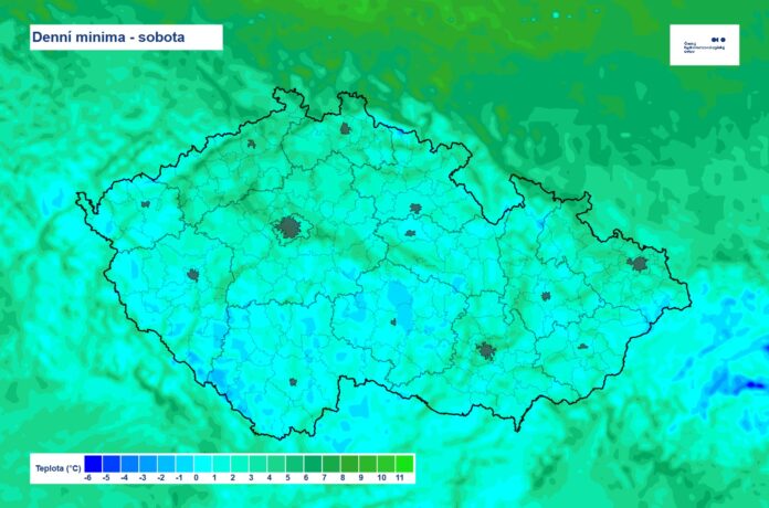 »Také v dalších dnech se budou teploty ve 2 metrech nad zemí pohybovat v nočních a ranních hodinách jen těsně nad bodem mrazu, ale přízemní teploty budou stále často klesat k hodnotám až kolem -3 °C,« uvedl na svém Facebooku Český hydometeorologický ústav (ČHMÚ).
