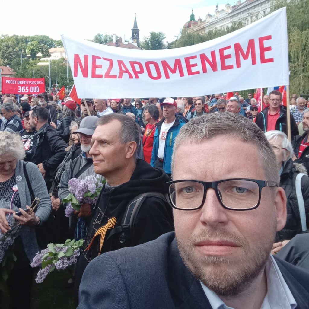 »Na vojáky Rudé armády, kteří právě před 80 lety osvobodili bojující Prahu, nezapomínáme. Na místě bývalého pomníku tanku číslo 23 na pražském Smíchově, který byl vandalsky poničen režimním pseudoumělcem Davidem Černým a následně hanebně odstraněn, vzdáváme hold osvoboditelům našeho hlavního města. Všem režimním přepisovačům navzdory jasně říkáme, že ti kteří 9. května 1945 přinesli do Prahy svobodu, z historické paměti lidu nikdy nezmizí,« uvedl například na Smíchově místopředseda KSČM Milan Krajča. »Bohužel v Evropě už válka znovu probíhá a premiér Fiala nás do ní zatahuje. A kvůli tomuto zaprodanci se náš stát stává spolupachatelem této války,« připojil předseda České strany národně sociální (ČSNS) Michal Klusáček.