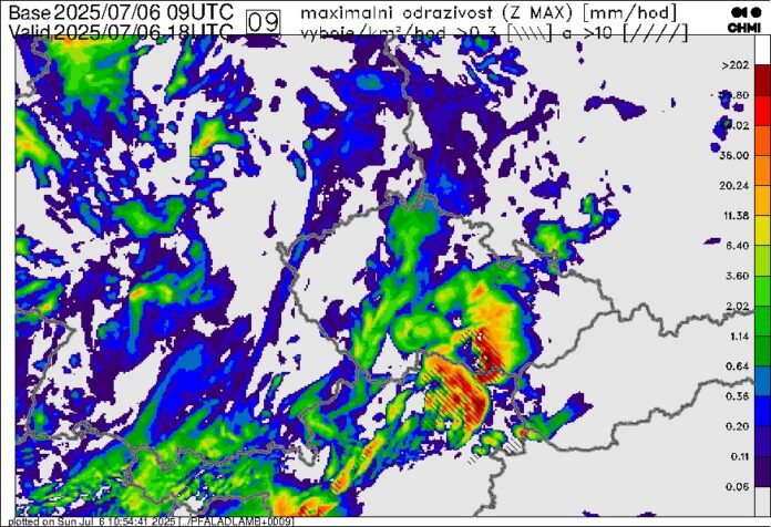 Nejnižší stupeň (žlutý) výstrahy před silnými bouřkami byl vydán dnes dopoledne. »Během podvečerních a večerních hodin očekáváme v prostoru Rakouska výraznější tvorbu bouřek, které by měly následně postupovat nad naše území na jih Moravy a Zlínsko. Neočekáváme tedy samotnou tvorbu bouřek nad naším územím, ale jejich příchod od jihozápadu do prostoru jižní a jihovýchodní Moravy,« napsali meteorologové na Facebooku.
