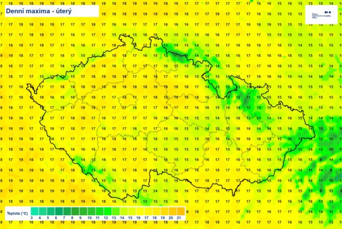 Nejteplejším dnem bude středa, kdy se teploty vyšplhají nad 20 stupňů Celsia, nicméně od čtvrtka přibyde oblačnosti a od severovýchodu k nám opět pronikne chladnější a vlhčí vzduch. Teploty přes den už nad 20 °C nevystoupí, pohybovat se budou většinou jen kolem 15 °C. Šance bude i na přeháňky nebo slabší déšť, ale srážek mnoho nebude a nebudou plošné.
