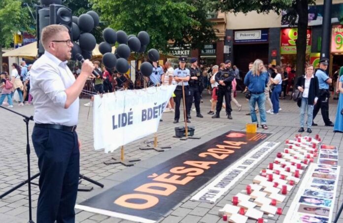 Při brutálním činu bylo v oděském Domě odborů banderovskými zločinci zavražděno několik desítek lidí. Každoroční akci, připomínající oběti režimu, který se dostal k moci po krvavém státním převratu na Majdanu, uspořádala iniciativa Ne základnám a spolek Alternativa zdola.