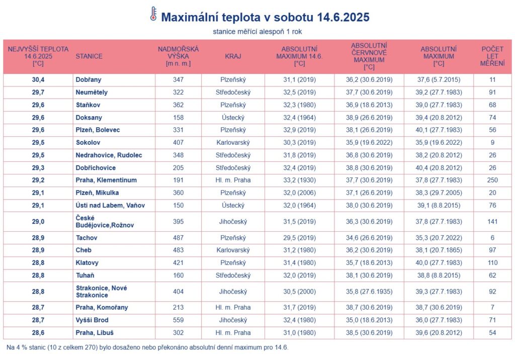 Na jedné stanici v síti Českého hydrometeorologického ústavu (ČHMÚ), v Dobřanech v Plzeňském kraji, byla včera naměřena tropická teplota. Konkrétně 30,4 °C. Meteorologové to uvedli na Facebooku.