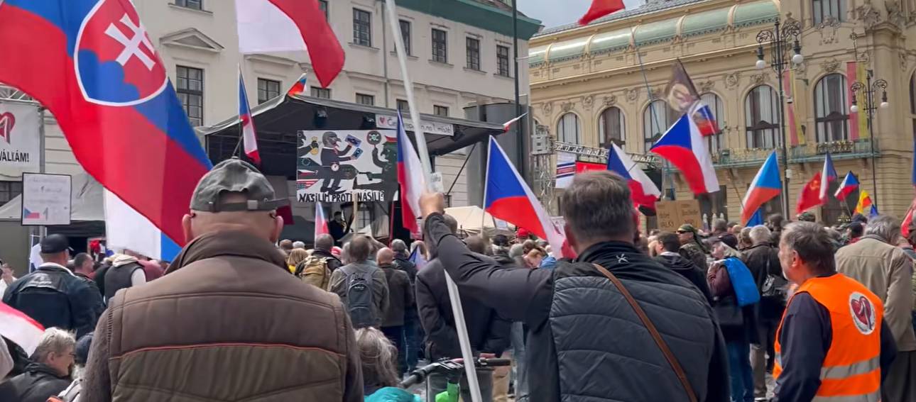 Nejen zaplněné Staroměstské náměstí, kde se sešly tisíce lidí na celonárodním setkání Česko proti válce, ale i náměstí Republiky dnes v Praze žilo protesty proti vládě a oslavami 80. výročí osvobození naší vlasti a konce II. světové války. Demonstraci za urovnání vztahů s Ruskou federací uspořádal aktivista a předseda hnutí Česká republika na 1. místě Ladislav Vrabel.