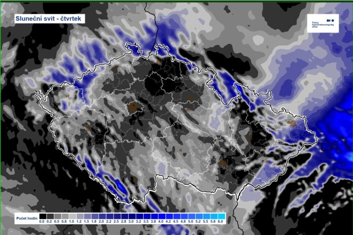 Až do pátku bude v Česku převládat zatažená obloha a přeháňky, které budou místy i sněhové. Teploty mohou klesnout pod nulu i během dne. Podle předpovědi Českého hydrometeorologického ústavu (ČHMÚ) se na východě republiky mohou v pátek ve vyšších polohách nad 500 metrů tvořit sněhové jazyky.
