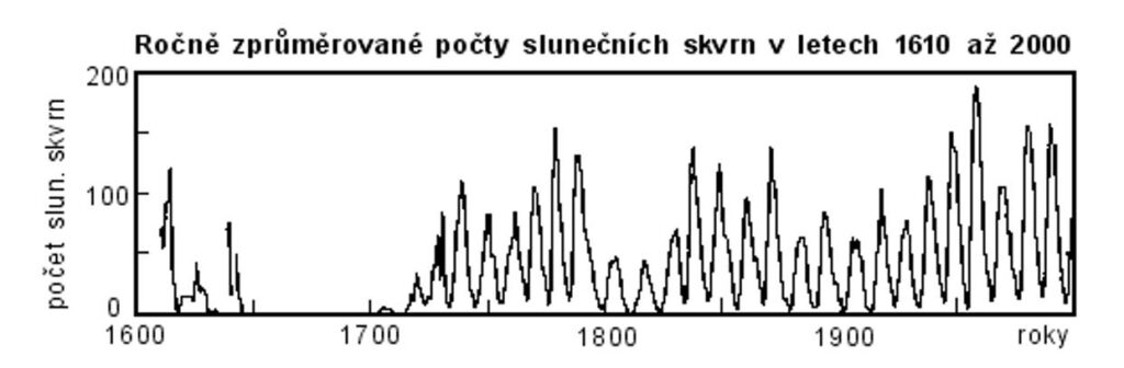 Období praktické absence slunečních skvrn v 17. a počátkem 18. století odpovídá tzv. malá doba ledová, tj. určité ochlazení klimatu v rámci současné doby meziledové.