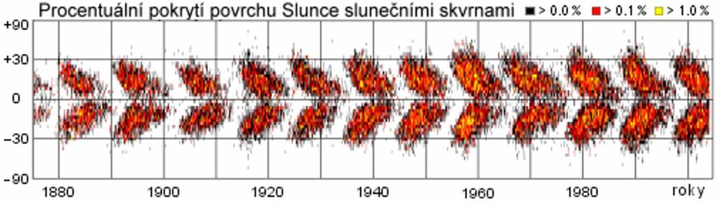 Podle IPCC k oteplování klimatu Země dochází zhruba od let 1850-70. Rychlé oteplování se datuje zhruba od roku 1970. Sluneční skvrny se sledují od roku 1611, kdy Galileo Galiley sestavil první dalekohled. Vývoj slunečních skvrn ukazuje graf č. 3: