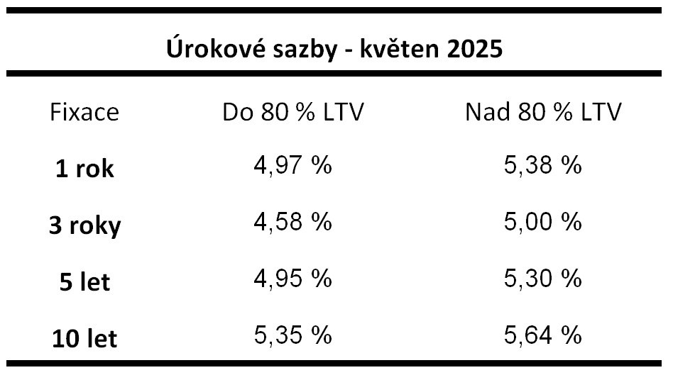 Nejnižší úroková sazba je nyní podle Swiss Life Hypoindexu u hypoték s tříletou fixací a LTV do 80 %. Průměrná nabídková sazba v tomto případě činí 4,58 %. U jednoleté a tříleté fixace sazby klesly těsně pod pět procent, u desetileté se stále výrazně drží nad pětiprocentní úrovní.