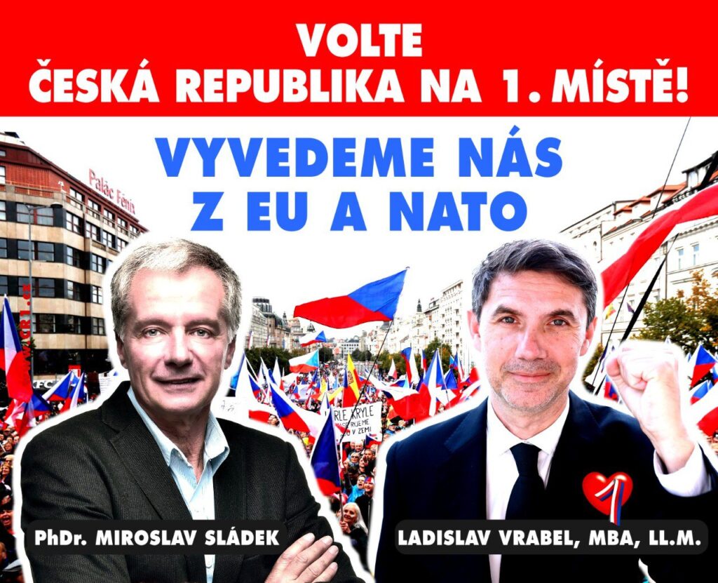 Exposlanec a bývalý prezidentský kandidát Miroslav Sládek bude lídrem kandidátky hnutí Česká republika na 1. místě! (ČR1) v Moravskoslezském kraji. Zástupci Sdružení pro republiku – Republikánské strany Československa (SPR-RSČ) jdou do volebního boje právě po boku hnutí předsedy Ladislava Vrabela. Ten je vedoucím kandidátem ve Středočeském kraji.