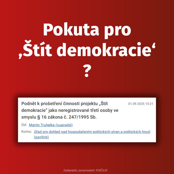 40. Nelžete. „Štít demokracie“ není žádná neziskovka, a proto vám do její činnosti nic není. Zrovna tak bychom mohli chtít prošetřit činnost hnutí Strašilo!, které podporují miliardáři Sábola (platil dovolenou Sterzikovi v Kostarice) a Jandejsek.