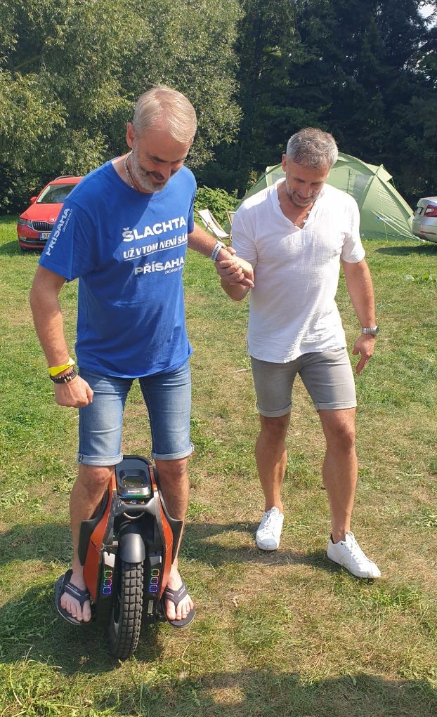 »V politice už jsem toho zažil hodně, ale na Přísaze se mi líbí týmový duch a ochota táhnout za jeden provaz,« řekl v Jincích lídr Přísahy a bývalý hejtman Jihočeského kraje Jiří Zimola, který přímo na akci učil Šlachtu jízdě na elektrické jednokolce.