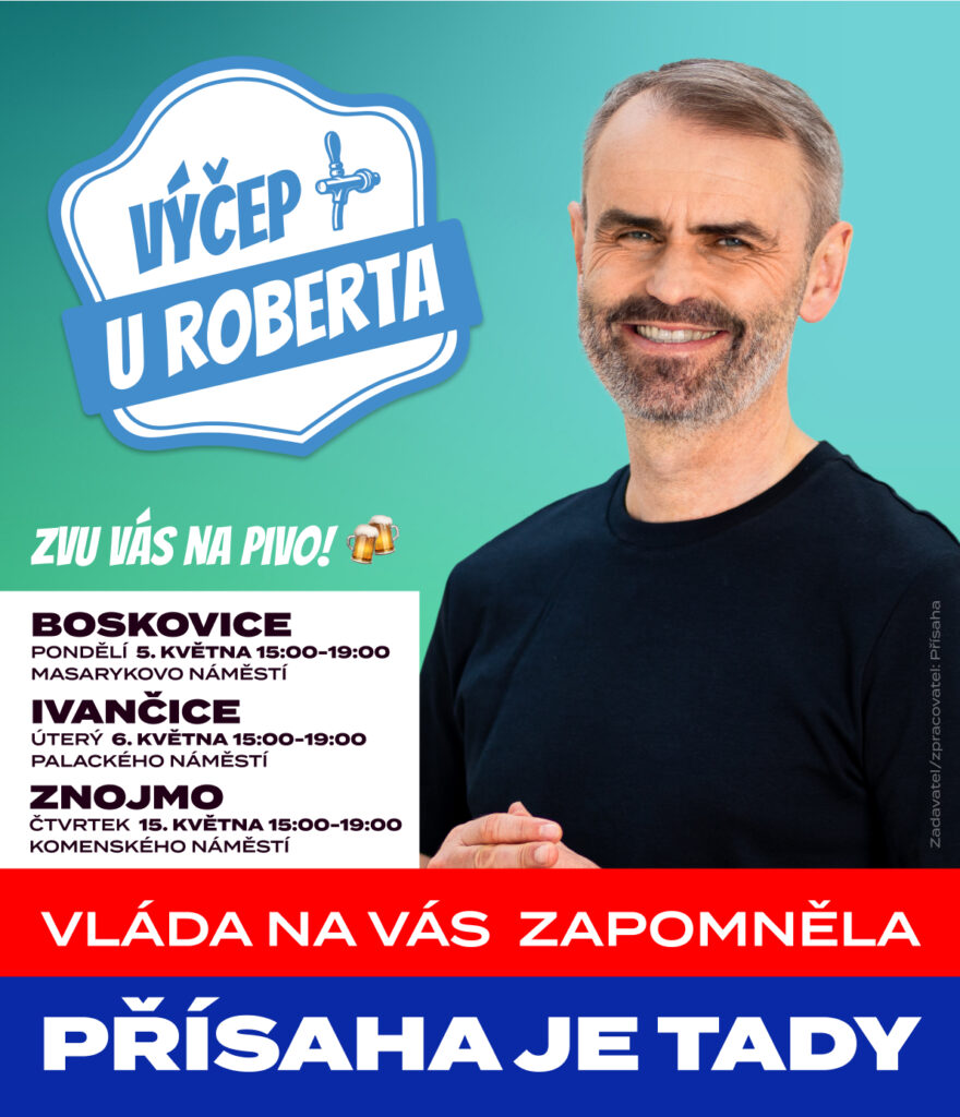 »Přijďte mi říct, čím vás neschopná vláda štve a co vás pálí,« vyzývá senátor. První zastávky mobilního Výčepu u Roberta jsou už dnes v Boskovicích na Blanensku a zítra v Ivančicích na Brněnsku.