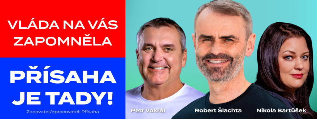 Hnutí Přísaha spouští kontaktní i billboardovou kampaň před parlamentními volbami a začíná s ní na Moravě. »Vláda na lidi zapomněla, proto jdeme za nimi. A protože kvůli tomu, co Fialův kabinet dělá, zavírají hospody, tak jednu hospodu vezeme s sebou,« láká Přísaha. Senátor a předseda hnutí Robert Šlachta v ní zve občany na pivo. A nejen, že ho zaplatí, ale také ho i načepuje.