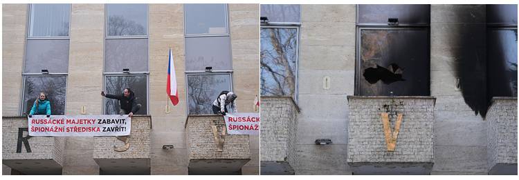 K zabavení ruského majetku vyzývali v pondělí ze střechy Ruského střediska vědy a kultury v pražské Bubenči aktivisté ze skupiny Kaputin. Vyšplhali na ni ráno. »Česká vláda dělá příliš málo v zabavování ruského majetku. Příkladem je toto špionážní středisko, které řídí akce extrémistických skupin,« uvedl pro iDNES.cz organizátor Otakar Van Gemund. … Aktivistická skupina Kaputin během tříletého výročí invaze Ruska na Ukrajinu uspořádala akci, při které čtyři její členové vyšplhali na budovu Ruského domu v Bubenči v Praze 6. Na budovu vyvěsili české vlajky a transparenty s nápisem: »Russácké majetky zabavit, špionážní střediska zavřít!«. … Skupina před budovou zapálila světlice v barvách ukrajinské vlajky a skandovala: »Češi Čechům a český majetek Čechům«. Po příjezdu osmi policejních aut aktivisté dobrovolně z budovy v ulici Na Zátorce slezli. Následně je policie zadržela.