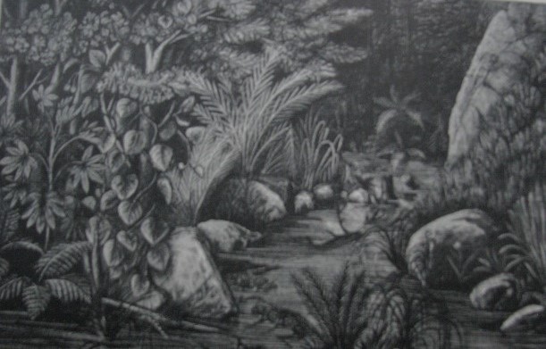 Vyšehořovické jezero by asi poskytlo trochu jiný obraz. Na březích potoka blížícího se ke svému ústí do rozsáhlého jezera, je hustý prales. Vzadu, dále od potoka a jezera rostou mohutné kmeny jehličnanů rodů Sequoia, Araucaria či Cunninghamia, střídající se malebně tu a tam se skupinami obrovských listnatých stromů, v jejichž temném stínu a vlhkém ovzduší blízkého břehu rostou překrásné stromovité kapradiny a cykasy. V bujné směsici vlhka milovných rostlin, rostoucích z velikých vodních tůní, z kterých vynikají rostliny druhu Butomites cretaceus, problýskávají tu a tam velké, dlanitodílné listy druhu Aralia kowaleskiana a také předchůdce dnešního břečťanu druh Hedera primordialis, ovíjející se těsně kolem kmenů eucvalyptů a brání hlubšímu pohledu do pralesa. Na hustě zarostlém svahu vystupuje podivná Krannera se svými tlustými, řemenovitými, kolmo nastraženými listy. Níže, na příkrém svahu, roste spletité houští widdringtonií, juniperů, magnolií a dalších keřů zajímavých jehličnanů, kapradin, myrhovníků a dalších, aby tu a tam z nich vyrostla skupina krásně rostlých platanů, jejichž listy se ve volném prostoru třepetají a šumí, dodávajíce velkolepého rázu celé oné křídové krajině.