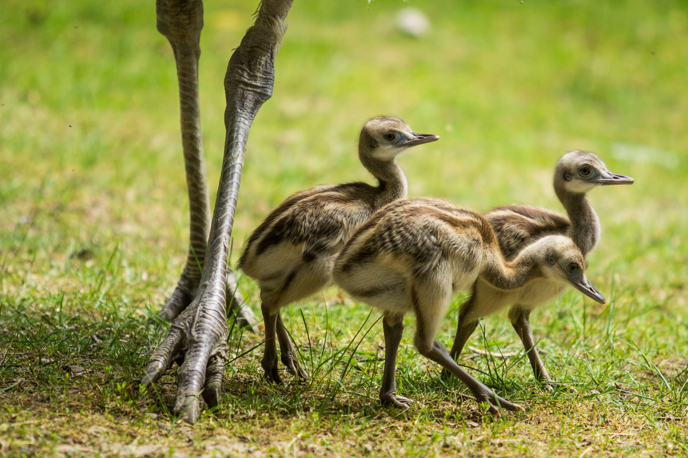 V ostravské zoologické zahradě je ve výběhu naproti kosterního modelu šavlozubce k vidění skupinka mláďat největšího nelétavého ptáka Jižní Ameriky – nandu pampového. Vzorně o ně pečuje jejich otec. Matky se do odchovu svých potomků nijak nezapojují, a jsou od samce s mláďaty dokonce oddělené.
