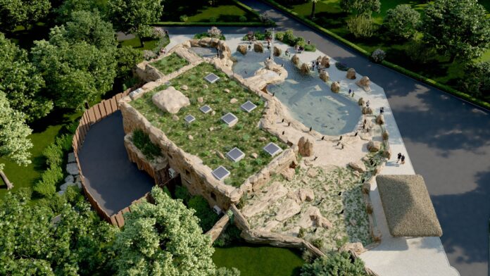 »Terény ve venkovním výběhu tučňáků budou přírodní, ve formě skal a s plážemi kolem bazénu i s tekoucím vodopádem. Lokalita, kde se tučňáci brýloví vyskytují, je charakteristická výskytem obřích balvanů zvaných bouldry. A právě model boulderu se stal také oním základním kamenem stavby. Expozice bude doplněna o zajímavé prvky z prostředí a života těchto zvířat. Součástí expozice bude i podmořská jeskyně, kde bude možno pozorovat pohyb tučňáků pod vodou. V této jeskyni bude také umístěno velké akvárium s rybami,« doplnil Břetislav Riger, náměstek primátora.