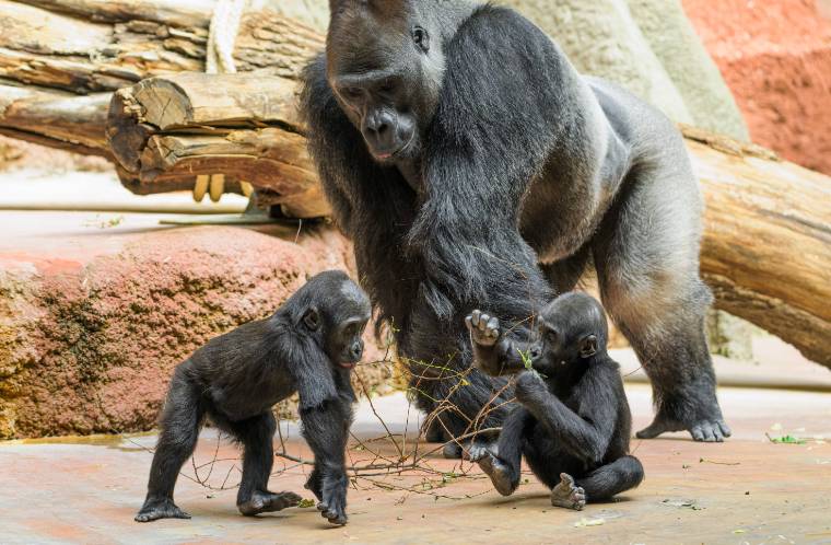 Samec gorily nížinné Kisumu se svými dcerami Mobi a Gaiou.