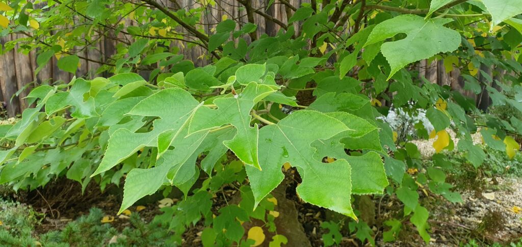 Jedná se o dvoudomou dřevinu s velkými nepravidelně tvarovanými listy. Mladé listy jsou srdčité a starší výrazně vykrajované podobně jako listy fíkovníku nebo moruší. Stromy jsou ve své domovině vcelku vysoké, ale u nás většinou nepřesáhnou 4–5 metrů. Roste téměř v jakékoli dobře odvodněné půdě, přednostně živné. Ve volné přírodě teplejšího klimatu má tendenci se plevelit a stát se invazní dřevinou. Potřebuje slunce nebo jen lehký polostín. Řez, pokud je nutný, je třeba provádět vždy v období dormance, tj. v době, kdy je rostlina utlumuje růst (v listopadu až prosinci), aby nedošlo k úniku mízy.