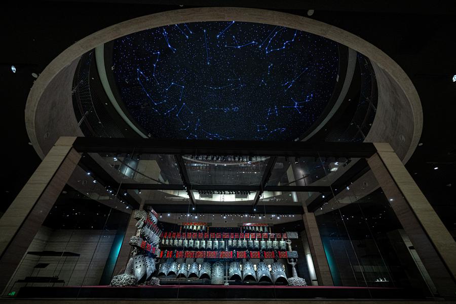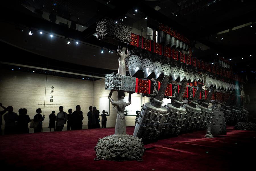Zvonkohra markýze Yi ze státu Zeng zachycena v Provinčním muzeu Chu-pej ve Wu-chanu, střední Čína, provincie Chu-pej, 17. dubna 2025. (Xinhua/Xiao Yijiu)